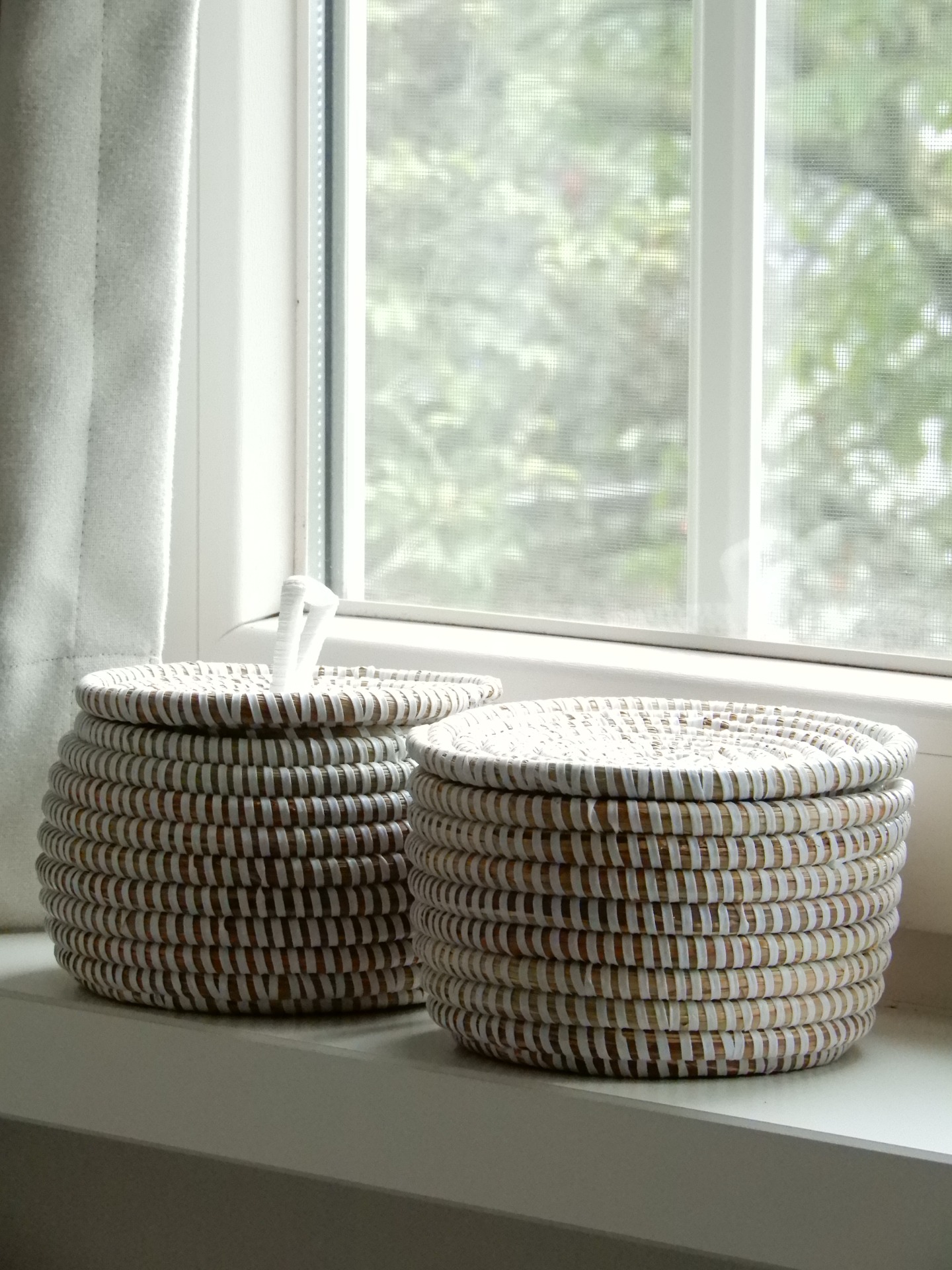 Dit kleine, decoratieve mandensetje kan gebruikt worden om kleine spullen op te bergen zoals sieraden, haaraccessoires, sleutels ... Je kan het ook gebruiken als een uniek geschenkcadeau.