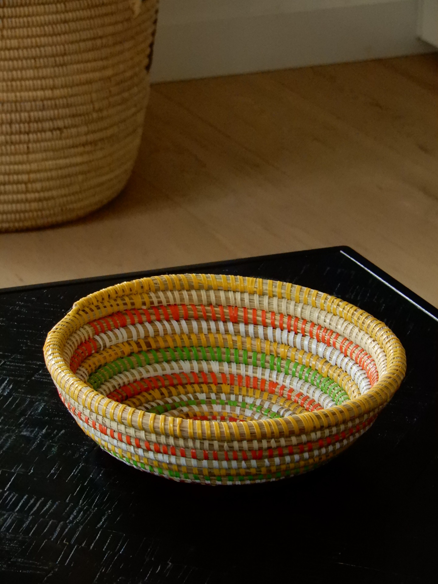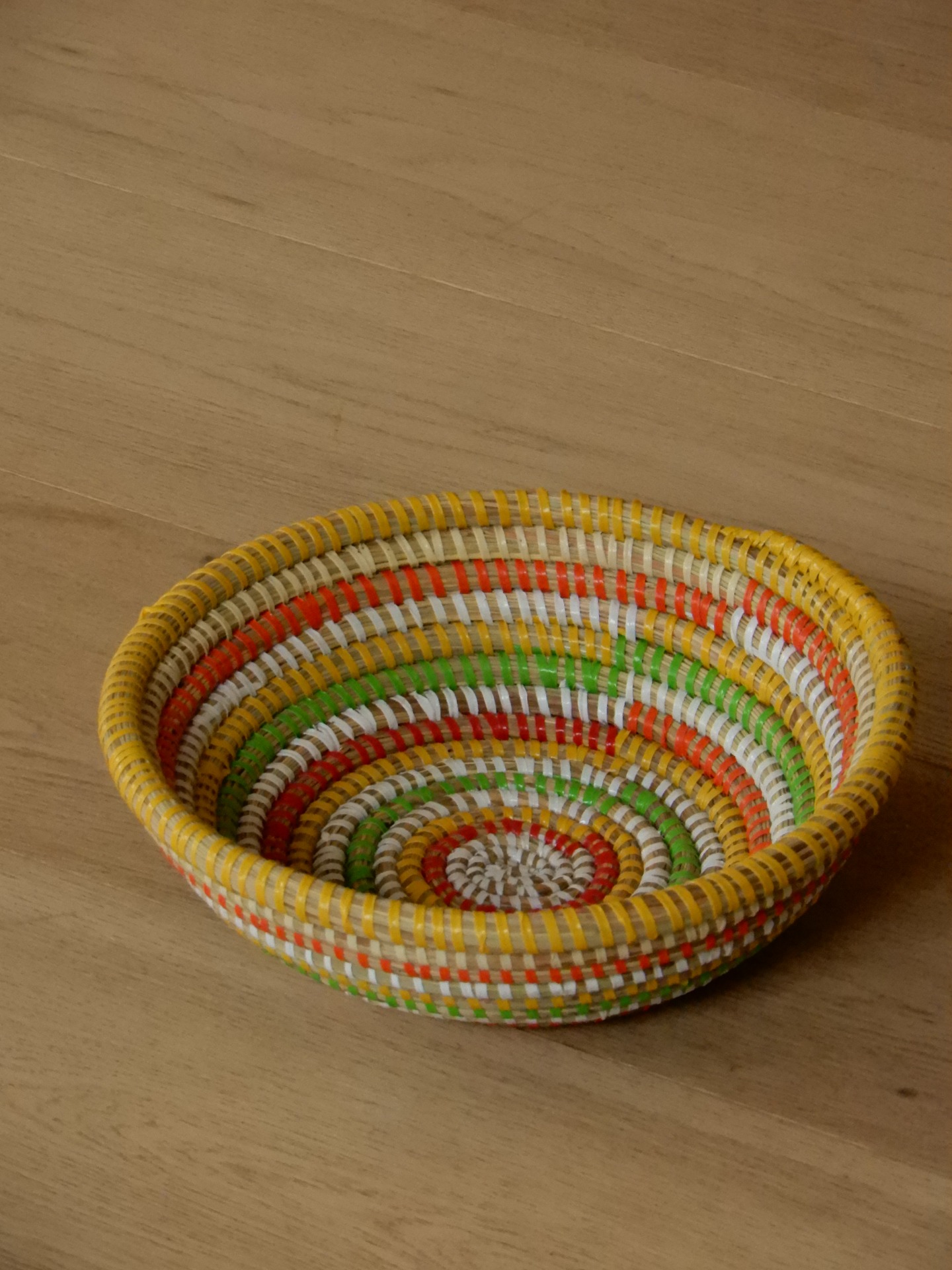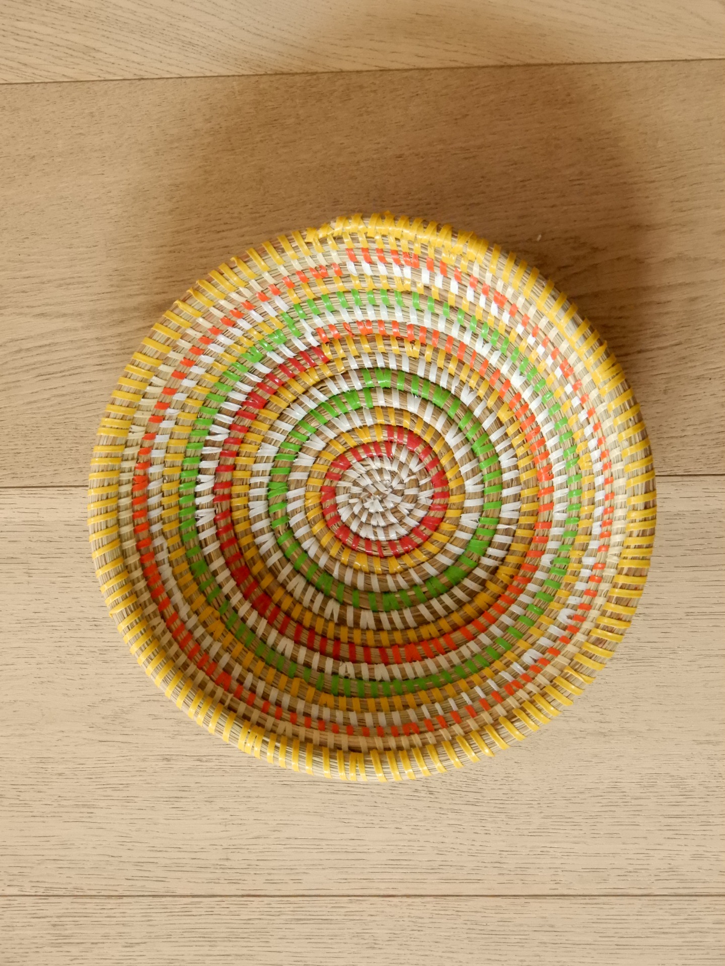 Gekleurde rieten schaal.